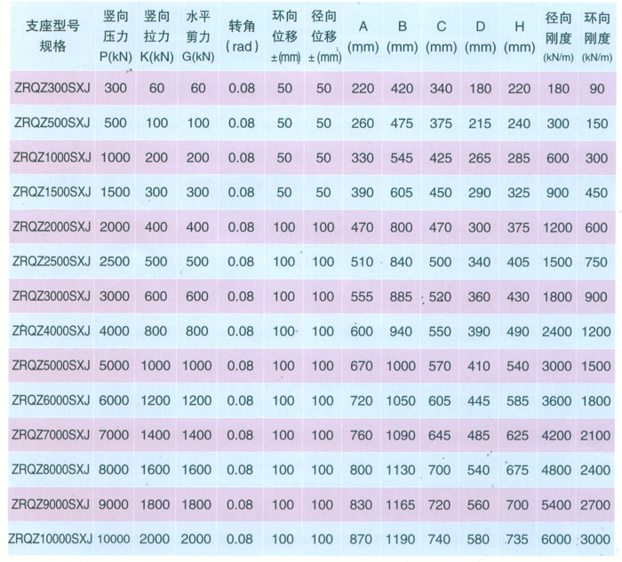 ZRQZ-SXJ雙向位移減震型自潤球鉸支座參數表    表4